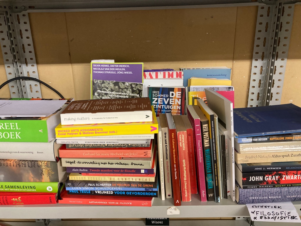 In het kader van een nieuwe onderzoeksgroep Hybrid Arts Lab ontvingen we een groep studenten van kunstacademie Minerva. Na inleidende gesprekken en een rondleiding met toelichting was er gelegenheid om de kunstcollectie en publicaties individueel te bekijken. Hier werd meteen uitstekend gebruik van gemaakt. Een vervolg, met de nadruk op transdisciplinaire praktijk, onderzoek en archivering, is in de maak. Met dank aan begeleiders Barthold Boksem en Hille Engelsma.